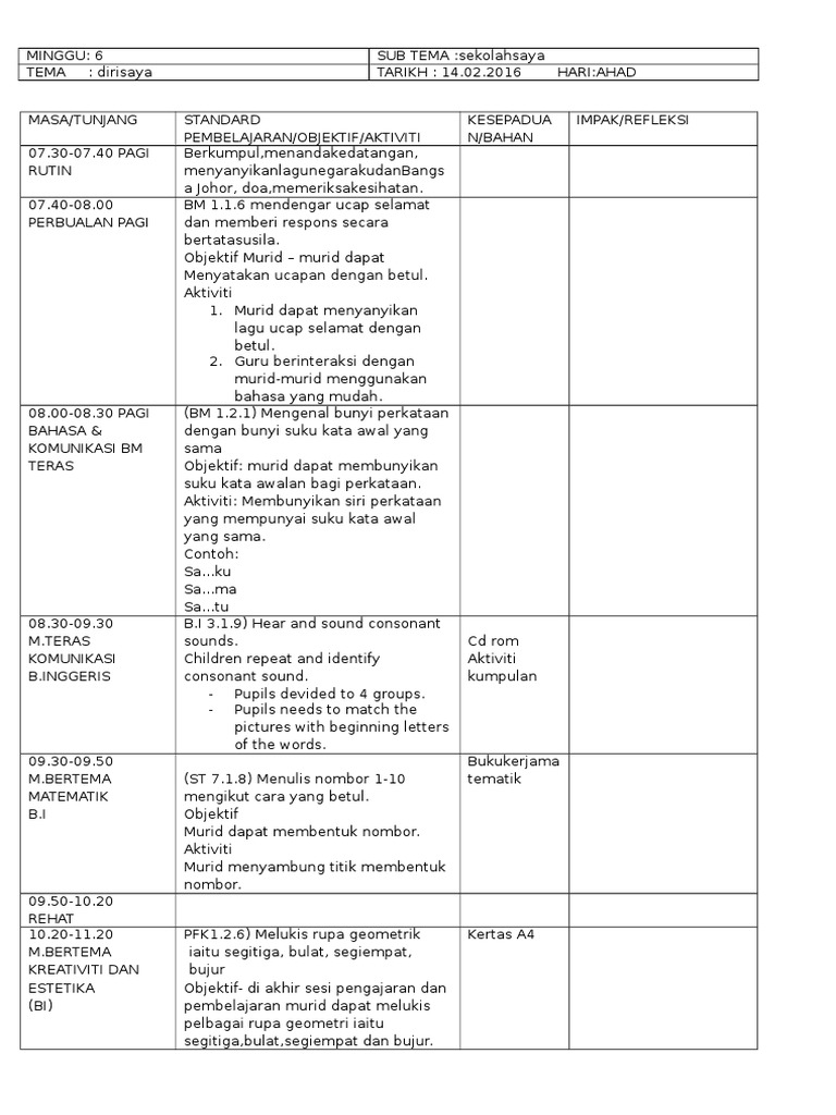 Kanak-kanak kenal nama-nama objek terdapat di sekolah. Rancangan pelajaran tahunan prasekolah 3 tema tema pengajaran dan pembelajaran prasekolah 2016 minggu tema subtema tarikh bulan cuti 1 orientasi orientasi 04-08012016 2 diri saya diri saya 11-15012016 3 anggota badan 18 -22012016 januari 4 keluarga saya 25-29012016 5 negara saya tahun baru cina 27-31012016 6 diri saya sekolah saya 01-05022016 7 kawan saya 8. Lembaran Kerja Menulis Alat Tulis.
