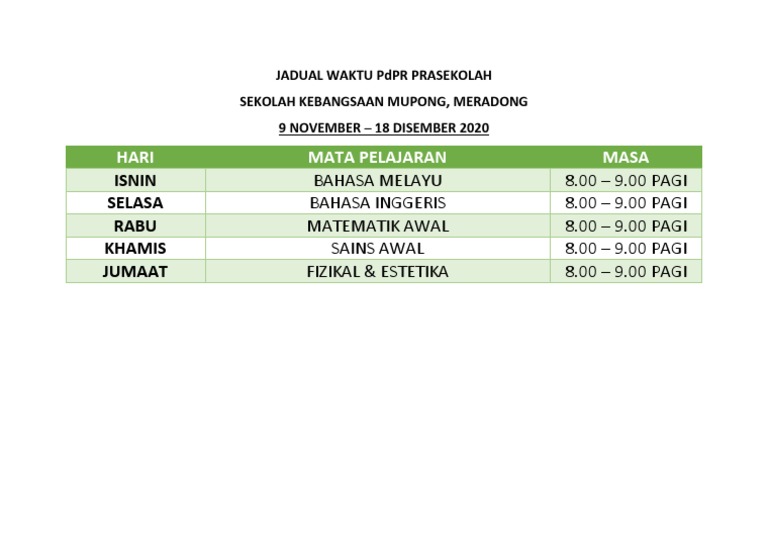 Bahasa Melayu 60 60 2. View 2021 JADUAL WAKTUdocx from MBA ZCMA 6022 at The National University of Malaysia. Pelaksanaan PdPR sehingga 8 Mac 2021.